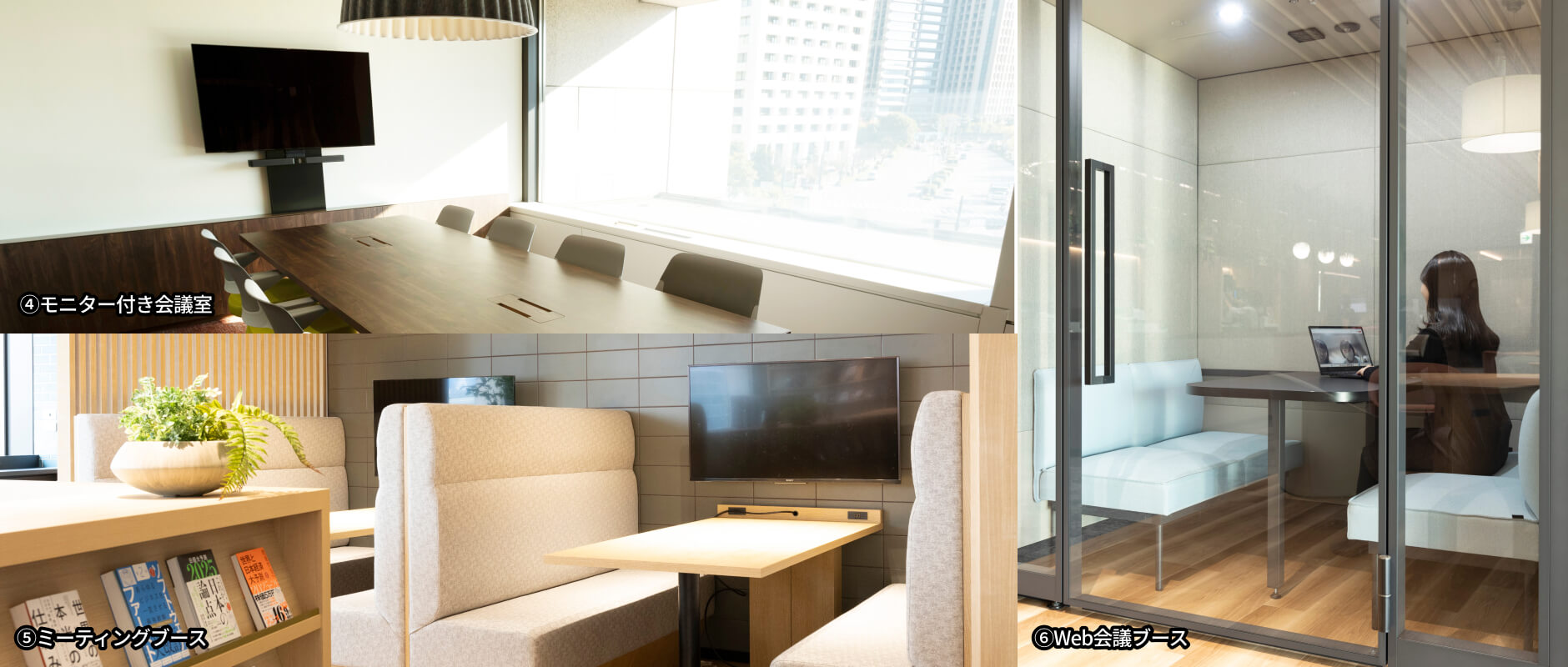 JBICではオフィスワークとテレワークを組み合わせた「ハイブリッドワーク」を推進しています。各職員がその日の業務状況に応じて使い分けており、1日当たり約3割の職員がテレワークを利用中です。オフィス・自宅・海外出張先などどこにいても相談・連携しやすいように、オンライン会議のできるスペースを多数整備しています。