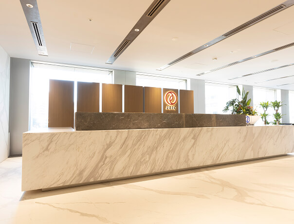 国内外からの来客をお迎えする受付。JBICの顔ともいえる空間です。