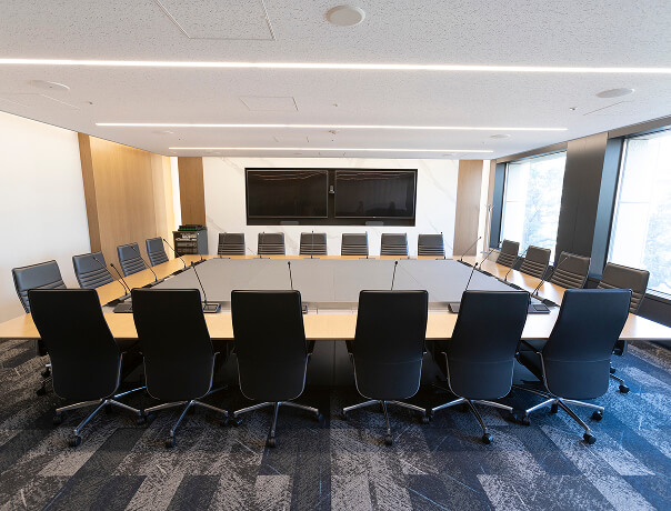 国内外の関係者が集う国際会議にも利用できる大会議室。大型モニターやマイクを完備。