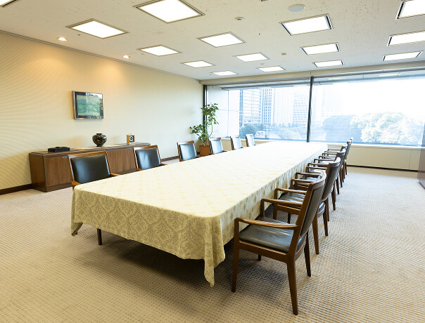 相手国の首脳などを招き、出融資契約の調印式を執り行う調印室。